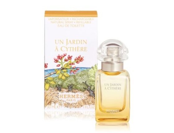 Hermès Un Jardin à Cythère Eau de Toilette ir citrusaugļu koksnes aromāts vīriešiem un sievietēm. Priecīgs un nesarežģīts aromāts, ko iespaidojusi Grieķijas Kitiras sala, kas iedvesmojusi daudzus māksliniekus.