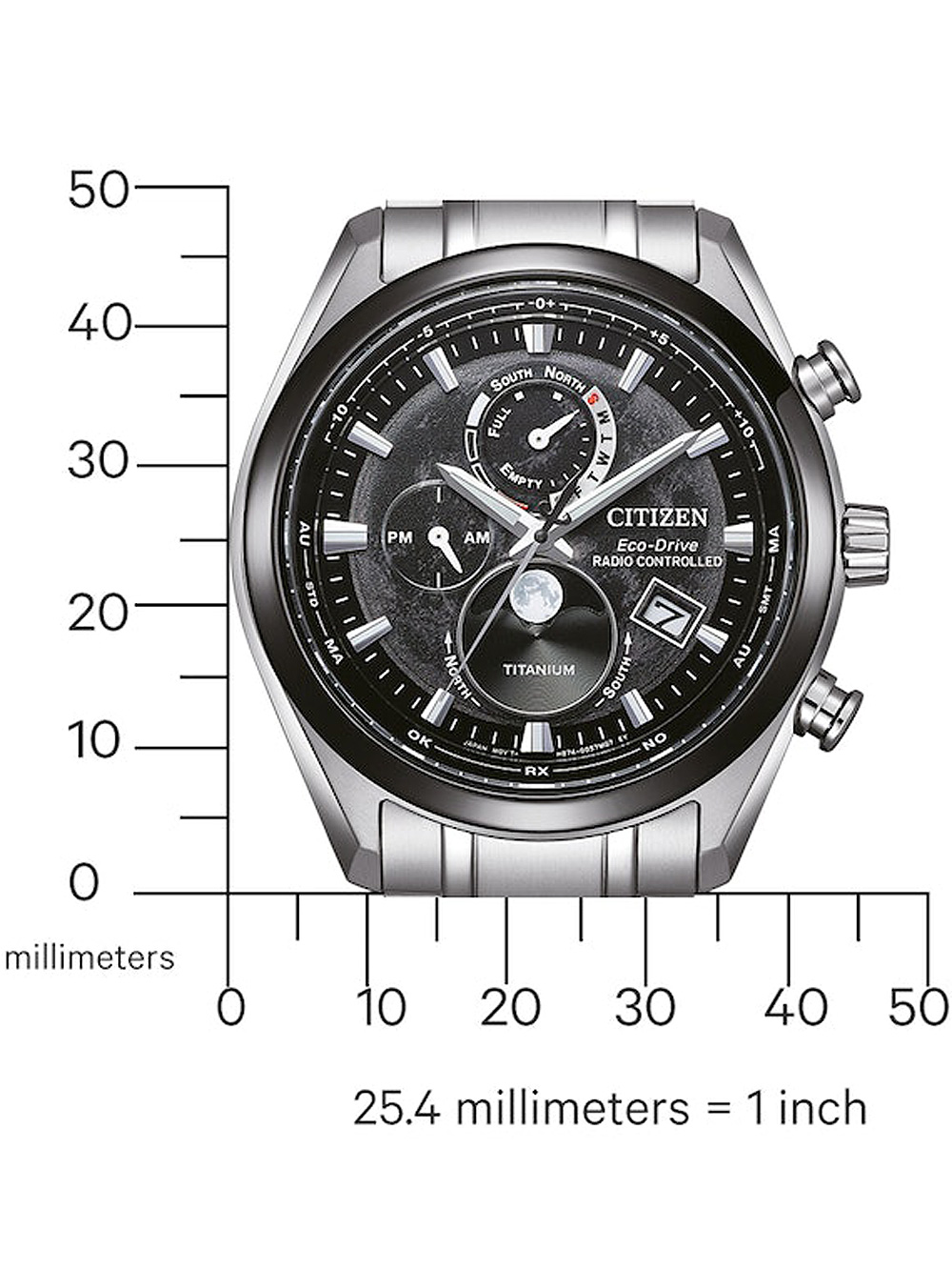 Citizen BY1018-80E Eco-Drive Moon Phase Titanium Radio Contr. Mens Watch