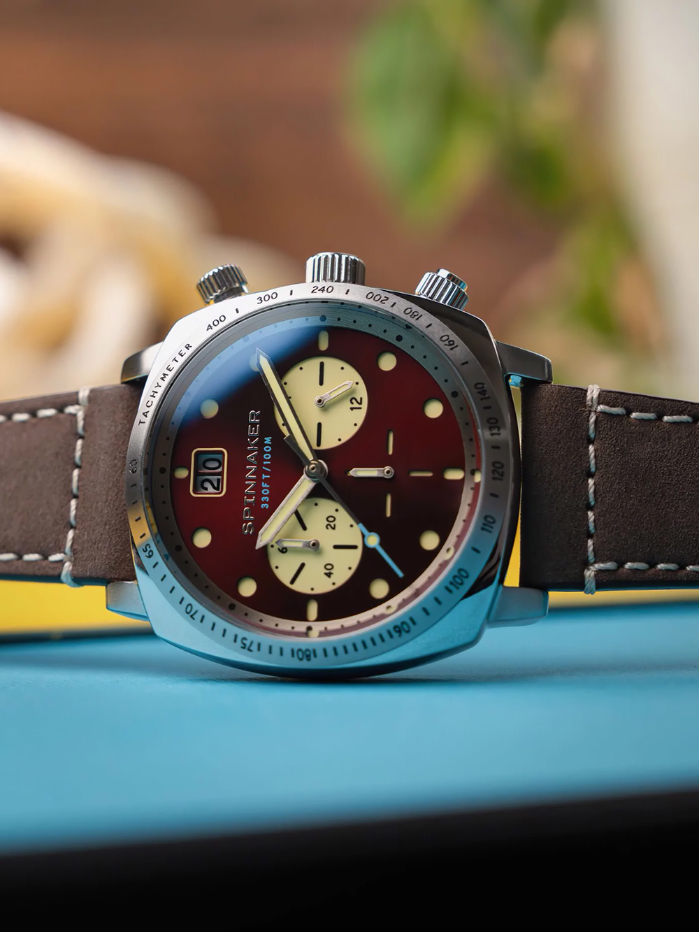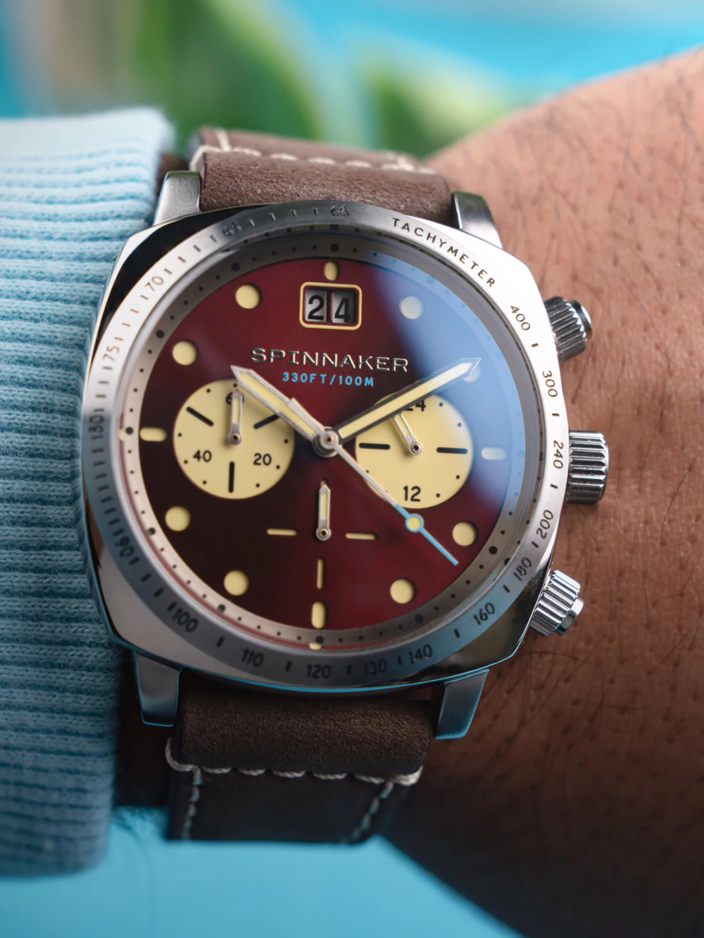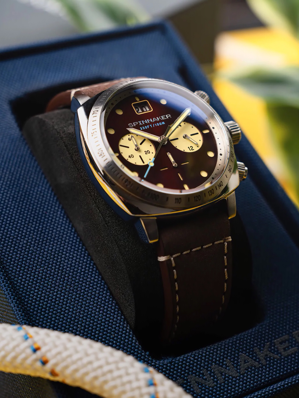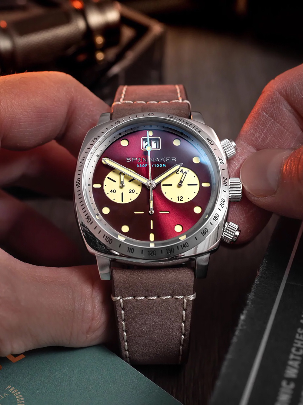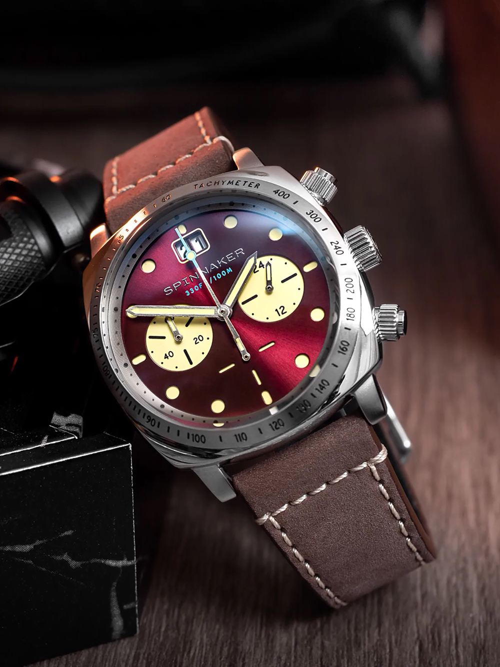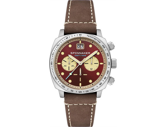 Spinnaker SP-5068-05 Mens Watch Hull Chronograph Burnt Maroon 42mm 10ATM