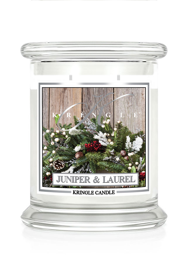 Kringle Candle Juniper & Laurel aromātiskā svece, vidēji 2 daktis (411 g)
