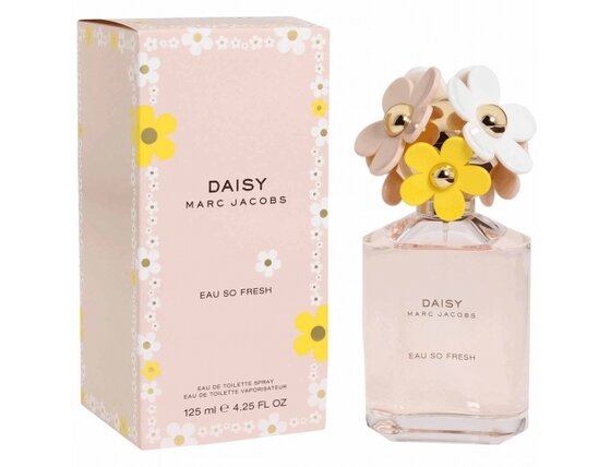 Marc Jacobs Daisy Eau So Fresh – daudzveidīgu ziedu pilna pļava. Dodieties pastaigā pa ziedošu pļavu un ieelpojiet burvīgo un dīvaino aromātu. Ļaujieties nogādāt mierīgā, saulainā vietā, kas pamodina tevī jauneklīgu garu ar pozitīvu, svaigu un rotaļīgu sajūtu. Aromāts Daisy Eau So Fresh atspoguļo Marc Jacobs sievietes būtību. Sievietes, kas mūs iedvesmo būt drosmīgām, elegantām, laipnām un oriģinālām. Lai bezrūpīgi dotos saules siltajā laukā, kas aizaudzis ar augstu zāli un izbaudītu visu, ko dzīve piedāvā. Daisy Eau So Fresh smaržas ir ziedu-augļu aromāts. Tas izstaro dzīvespriecīgu noskaņojumu un dzirkstošu enerģiju. Rotaļīgs ar dīvainu dvēseli. Šis oriģinālais aromāts jūs aizraus ar svaigu aveņu enerģiju, savvaļas rožu juteklisko vēsmu un saldajām plūmēm. Izsmalcināts, bet ne pārāk nopietns. Daisy Eau So Fresh atgādina zīmola Marc Jacobs sievišķīgā, provokatīvā dizaina vintage aromātu.