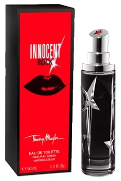 Thierry Mugler Angel Innocent Rock ir ziedu-augļu aromāts, ierobežots 2008. gada izdevums. Smaržas ir paredzētas visām nevaldāmām personībām, kas mīl mūziku, jo aromāts ir no tās iedvesmots. Aromāta sastāvdaļas sitās roka un deju popmūzikas ritmā. Smaržas ir jutekliska greipfrūta, melno piparu, rozes un ličī kombinācija. Aromāts ir piemērots visām sievietēm, kuras uzvedas tā, kā uzskata par pareizu. Viņi zina, kā būt nevainīgiem, un nākamajā dienā pārsteigs jūs ar pavedinumu, jutekliskumu un provokativitāti, ko jūs no viņiem negaidītu. Nav neviena gadījuma, kuram šīs smaržas nebūtu ideālas, tās ir piemērotas gan dienai, gan svinīgākiem vakara gadījumiem. Aromāts ir piemērots noslēpumainām dvēselēm, kuras nekad neatklāj visu par sevi un vēlas ļaut saviem mazajiem noslēpumiem atklāties ērtākajos brīžos. Ar Thierry Mugler Angel Innocent Rock smaržām jūs katru dienu varat būt savādāki, aromāts pielāgojas katram jūsu noskaņojumam un kļūst par jūsu otro ādu.